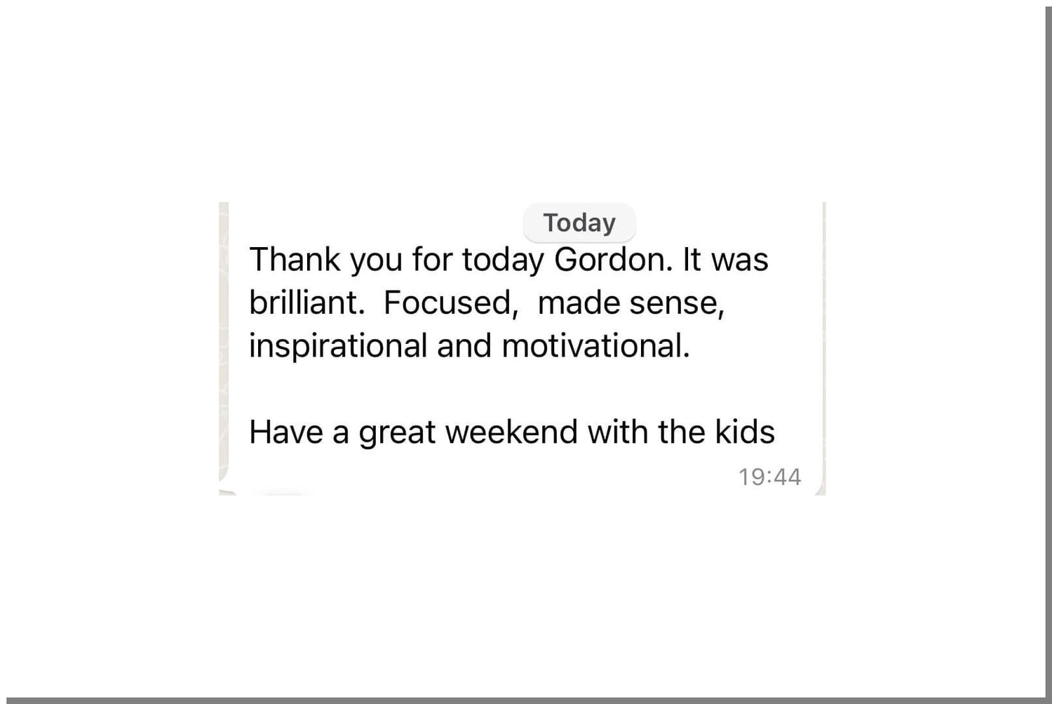 It is difficult to put into words the enormous impact Gordon has had on me... it's the strategies I use daily and the tools he supplied me with to achieve everything I want in life.