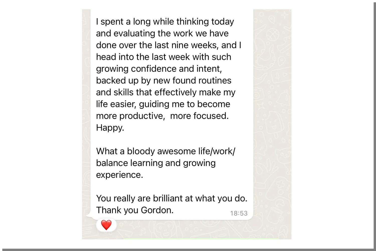 Here's a glimpse into the actual messages and breakthroughs my clients share with me...